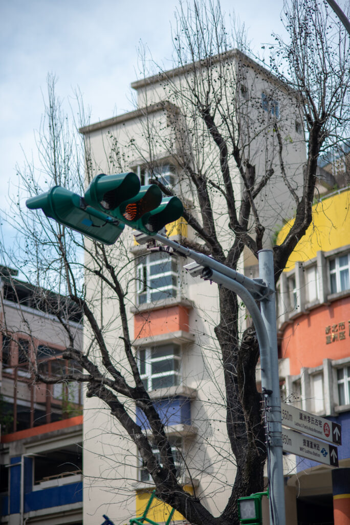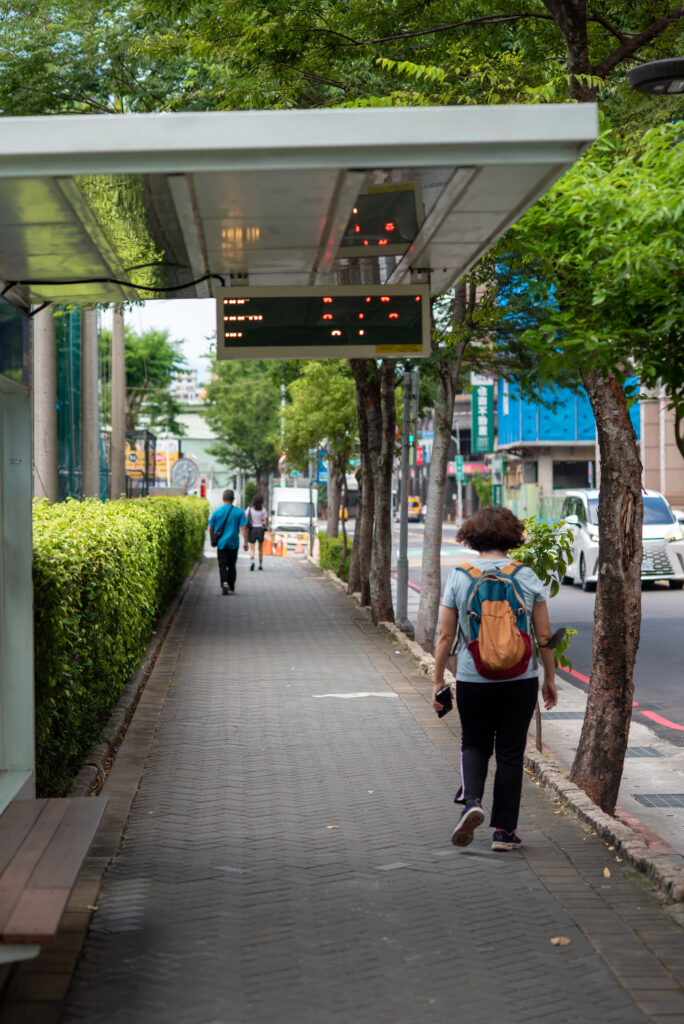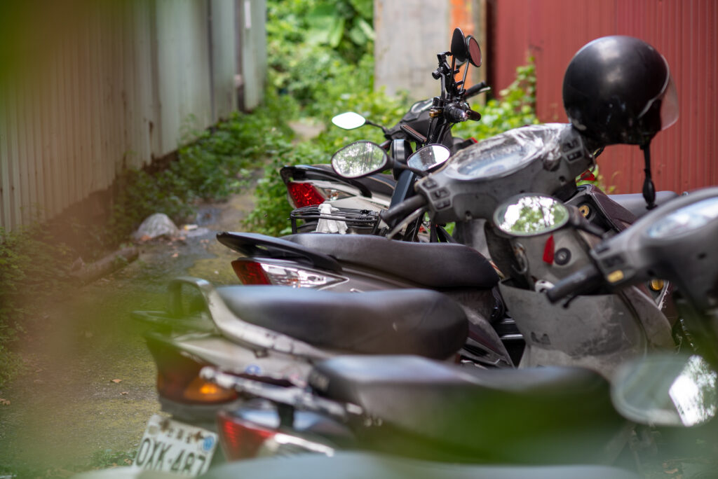 接著沿著中正路朝著南方走去,在路旁看到了一小排摩托車,前面剛好有綠植,就捕捉下了這樣的畫面。