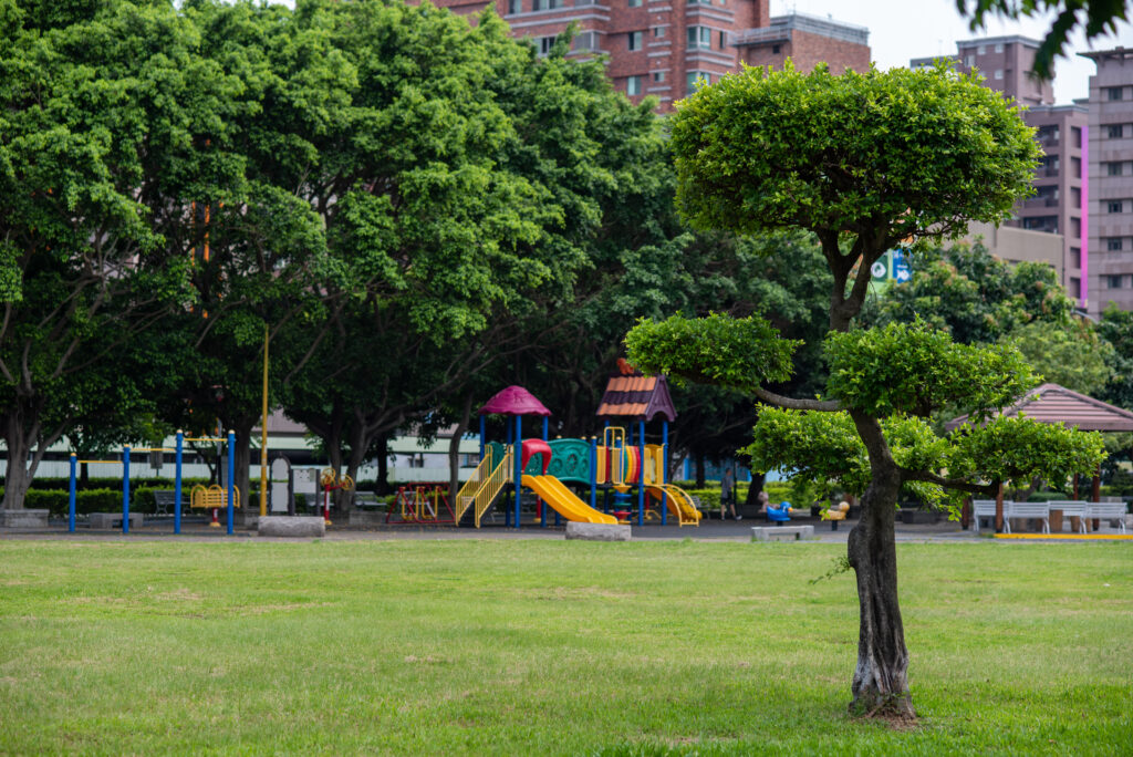 再來繼續前進,來到柳堤公園,就是一個很標準常見的公園。 遠方的遊樂器材自然的成為了遠景了,配合上前景的樹剛好達成一個平衡。