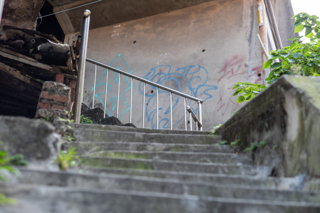 來到另一個巷子,向上陡峭的石製樓梯矗立於此,略為空洞的建築矗立於高處。 拾級而上,轉身看著下方的車流呼嘯而過,時間與青春在車來車往間悄然流逝。