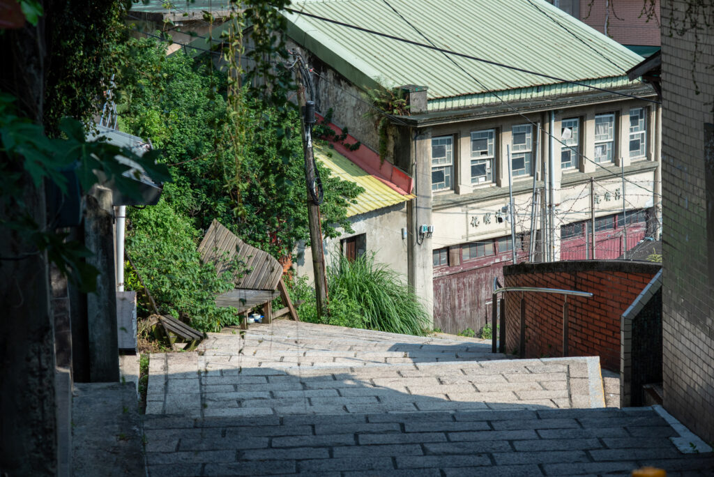 順著道路繼續前行,來到視野開闊的高處,剛好是一個景點:「重建街戀愛巷」。 據說此處見證了70年前才華洋溢的醫生文學家王昶雄與藝術家林玉珠的愛情故事。