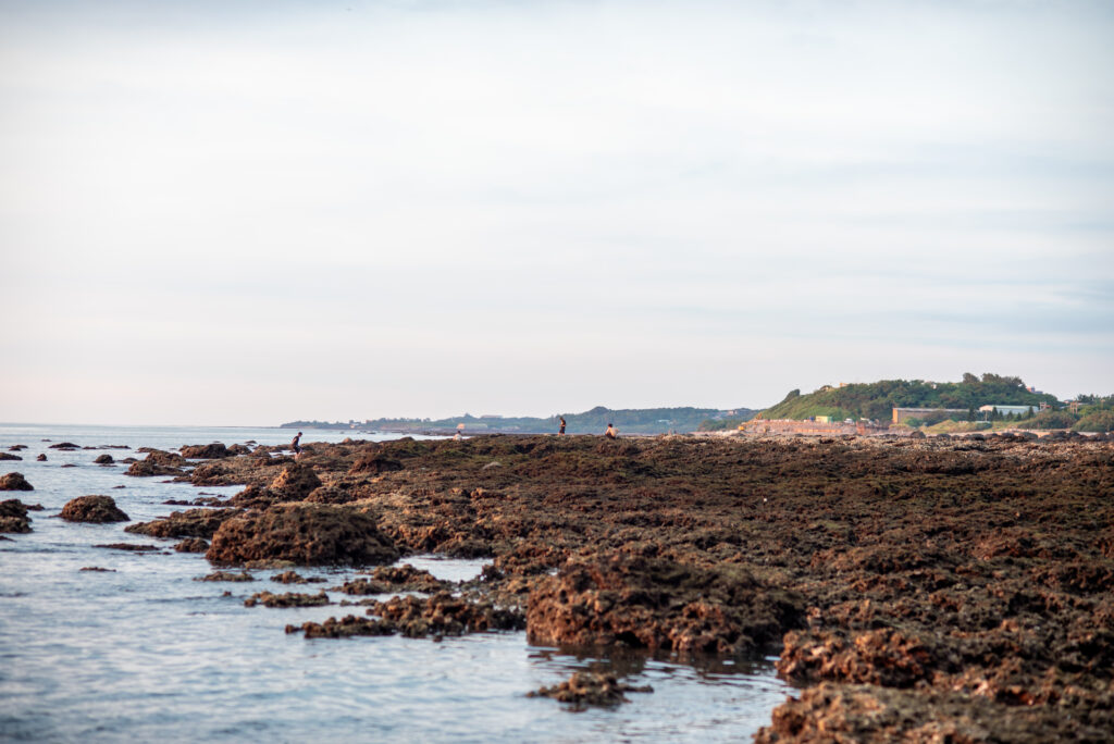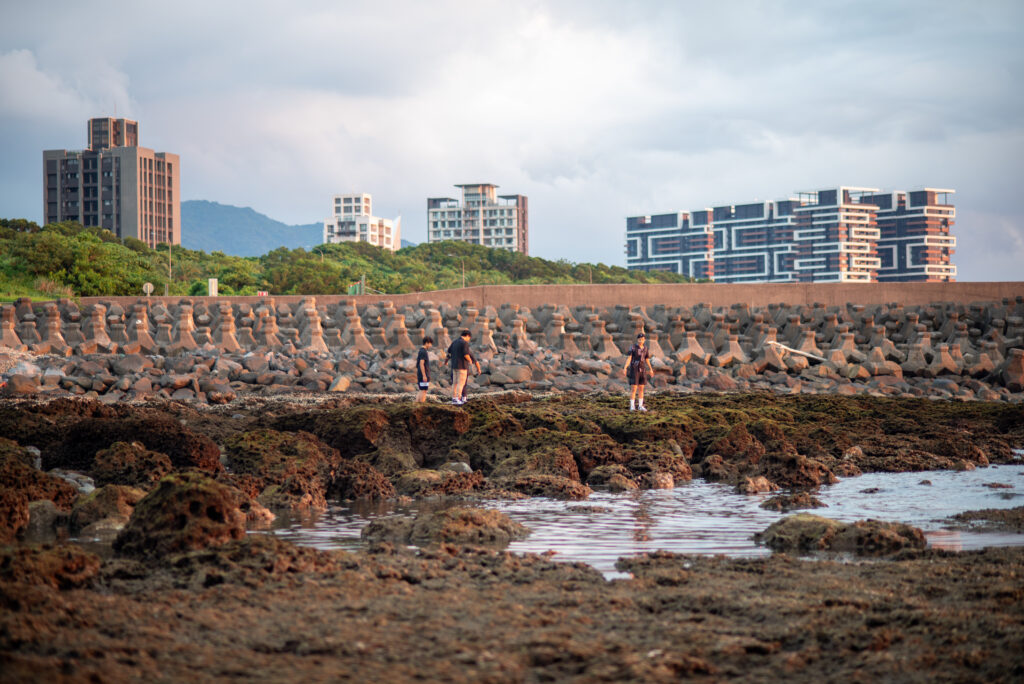騎著Ubike來到海邊,此時已然接近日落時分,揹著書包、踩著有些濕滑的石塊不斷向著海邊邁進。將手機架在一處安全的地方後,拿起相機向著四周拍啊拍,海似有種魔力,不斷吸引著旅人到訪。