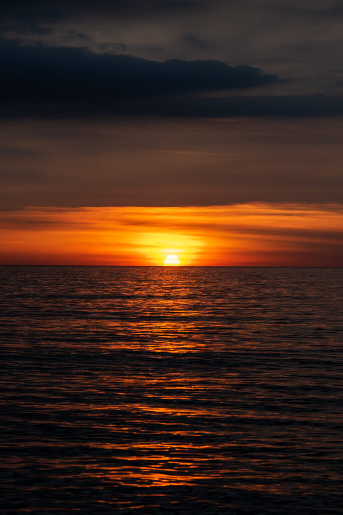 找了另一塊石頭靜靜地坐著,望著遠方的海天一線,太陽正緩緩地沒入地平線下。